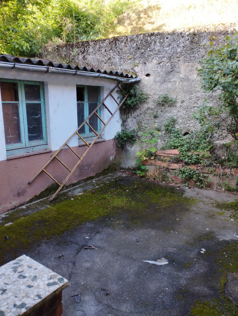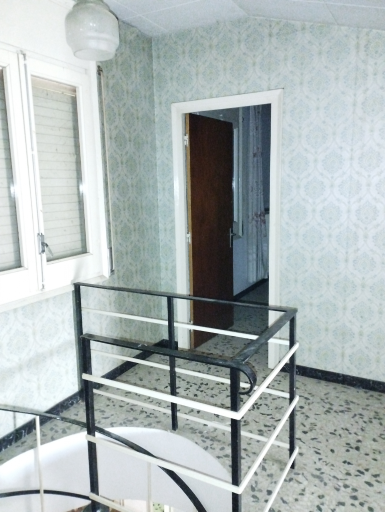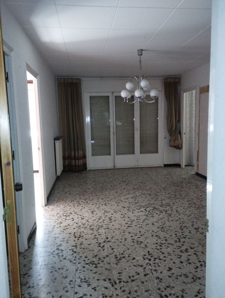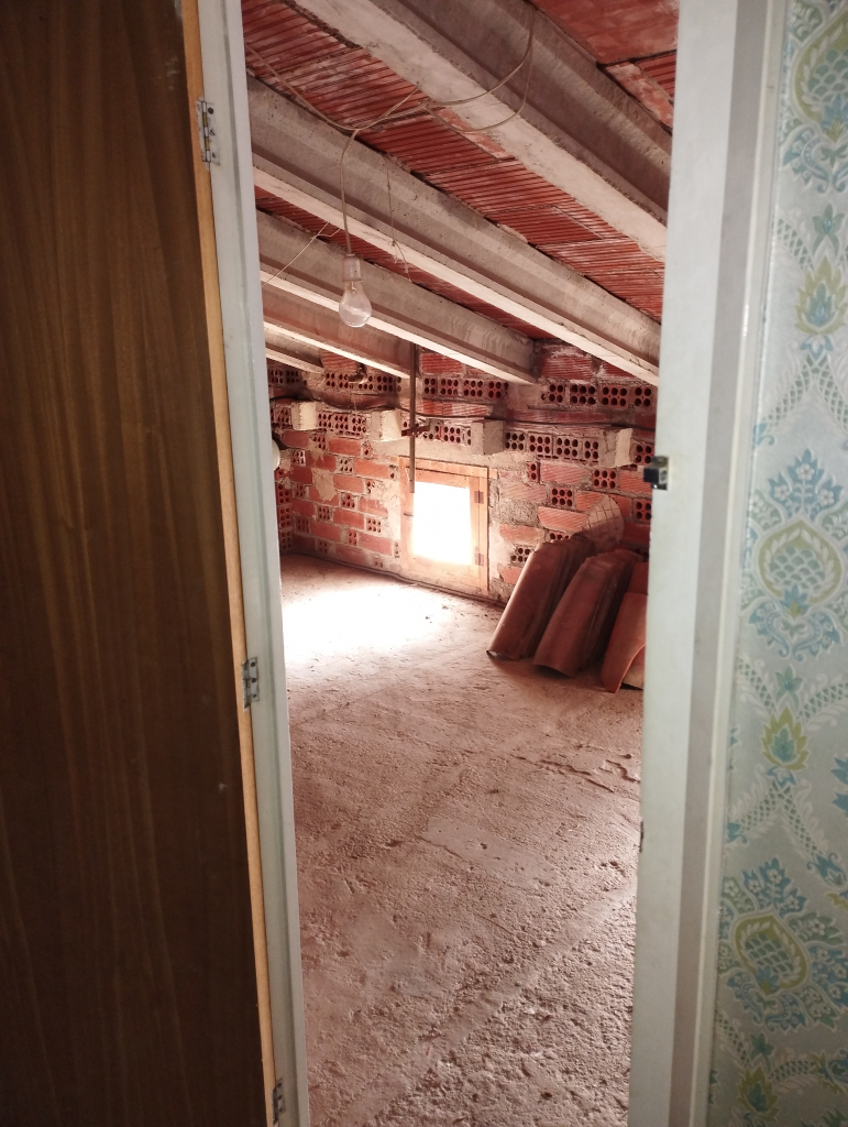 Primera planta amb pati, traster, cuina, menjador, bany i tres dormitoris.